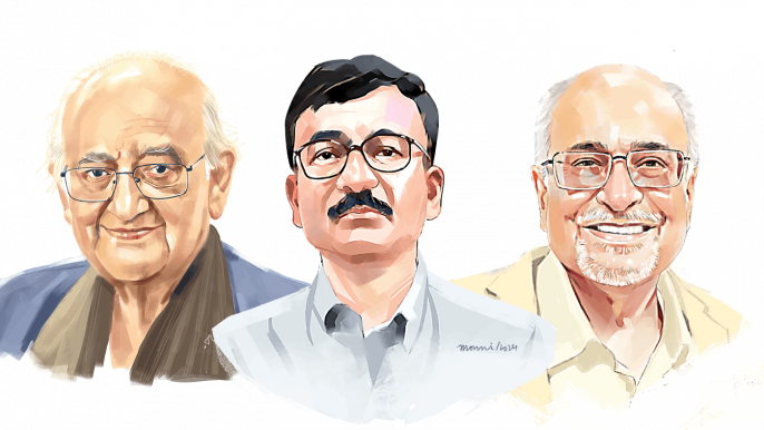 (L)Rehman Sobhan, Economist, (C)Touhid Hossain, Adviser, Foreign Affairs, (R)Debapriya Bhattacharya, Economist. Sketch: The Daily Rays